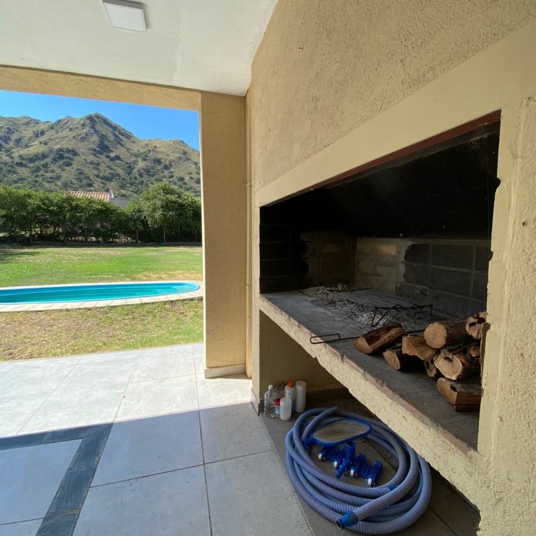 Galería semicubierta con asador/parrilla.