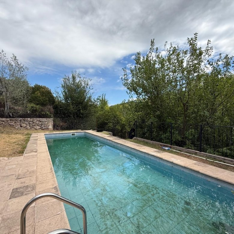 Piscina de material de 13 x 4 m, con salida directa al río