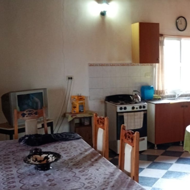 Casa de campo con casco de estancia. Cuenta con living, cocina y comedor integrados, dos dormitorios y dos baños, uno de ellos en suite. Dispone de dos tanques australianos de 8 m y 16 m de diámetro. Servicios de electricidad y agua potable al día. No cuenta con red de gas natural, pero posee tubos de 45 kg. Propiedad lista para escriturar.