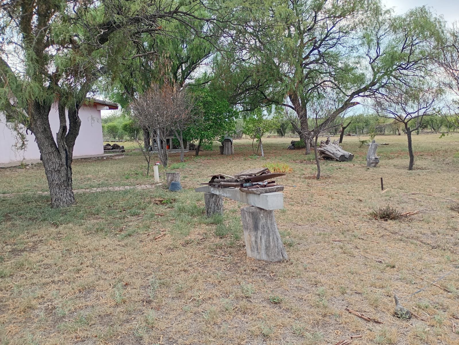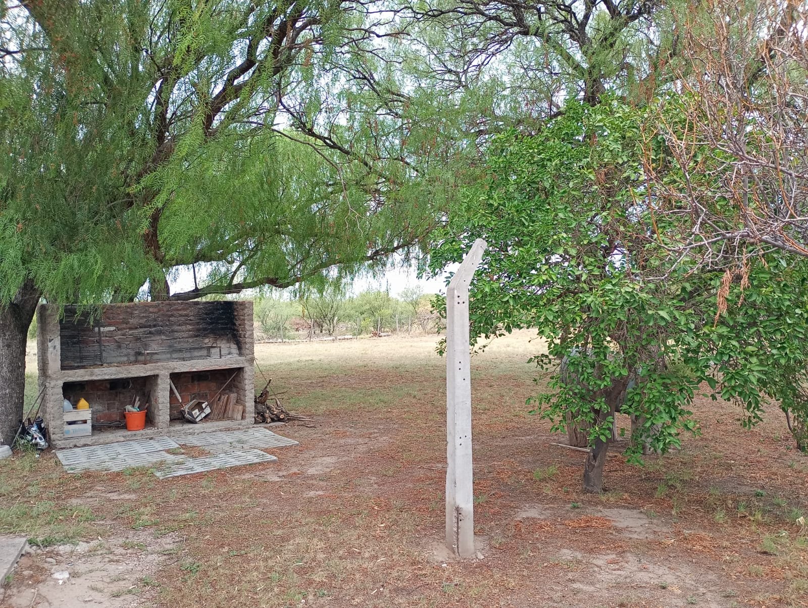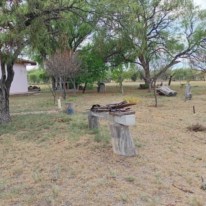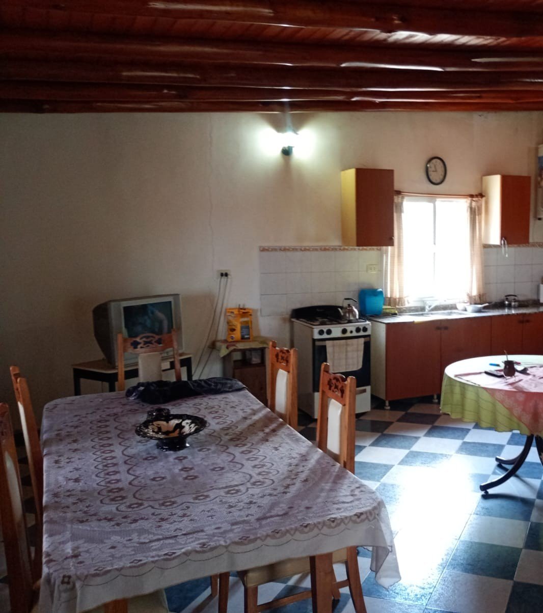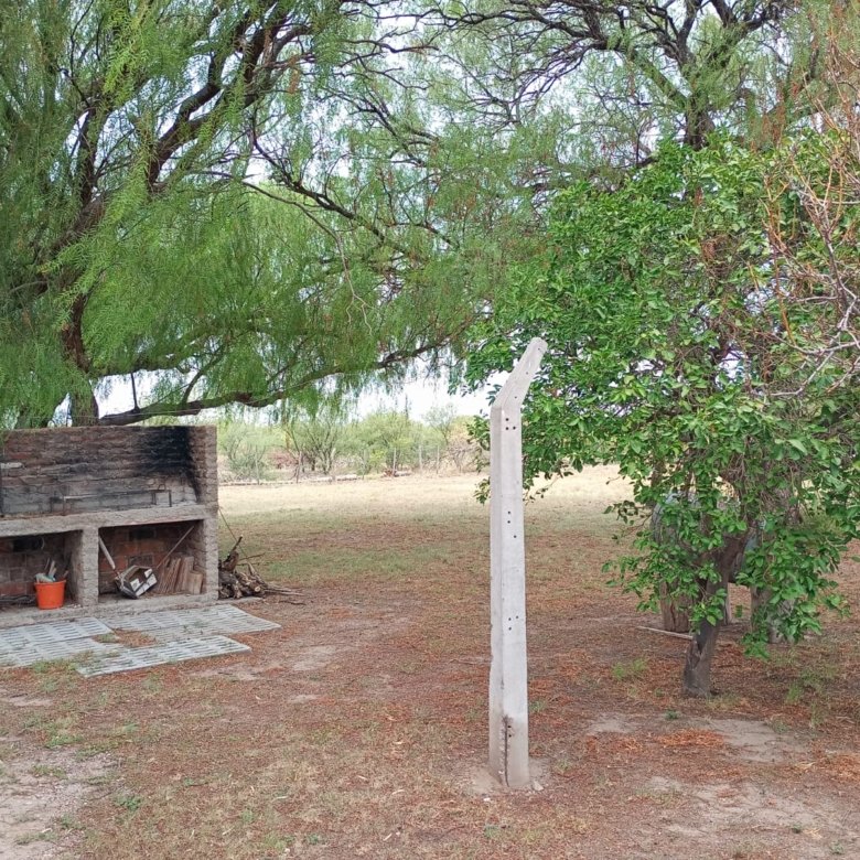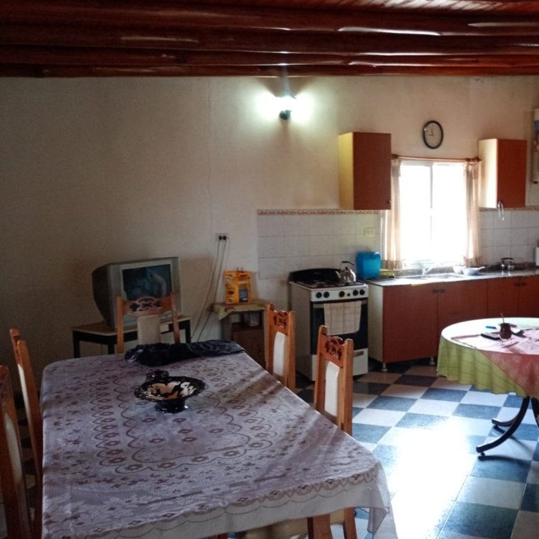 Casa de campo con casco de estancia. Cuenta con living, cocina y comedor integrados, dos dormitorios y dos baños, uno de ellos en suite. Dispone de dos tanques australianos de 8 m y 16 m de diámetro. Servicios de electricidad y agua potable al día. No cuenta con red de gas natural, pero posee tubos de 45 kg. Propiedad lista para escriturar.