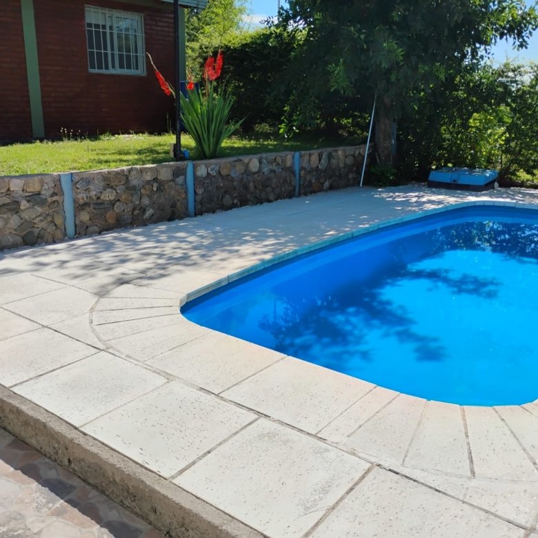 Sobre el frente del terreno se ubica una casa en excelente estado, que cuenta con 2 dormitorios, living comedor, cocina, baño, cochera semicubierta, patio y piscina.