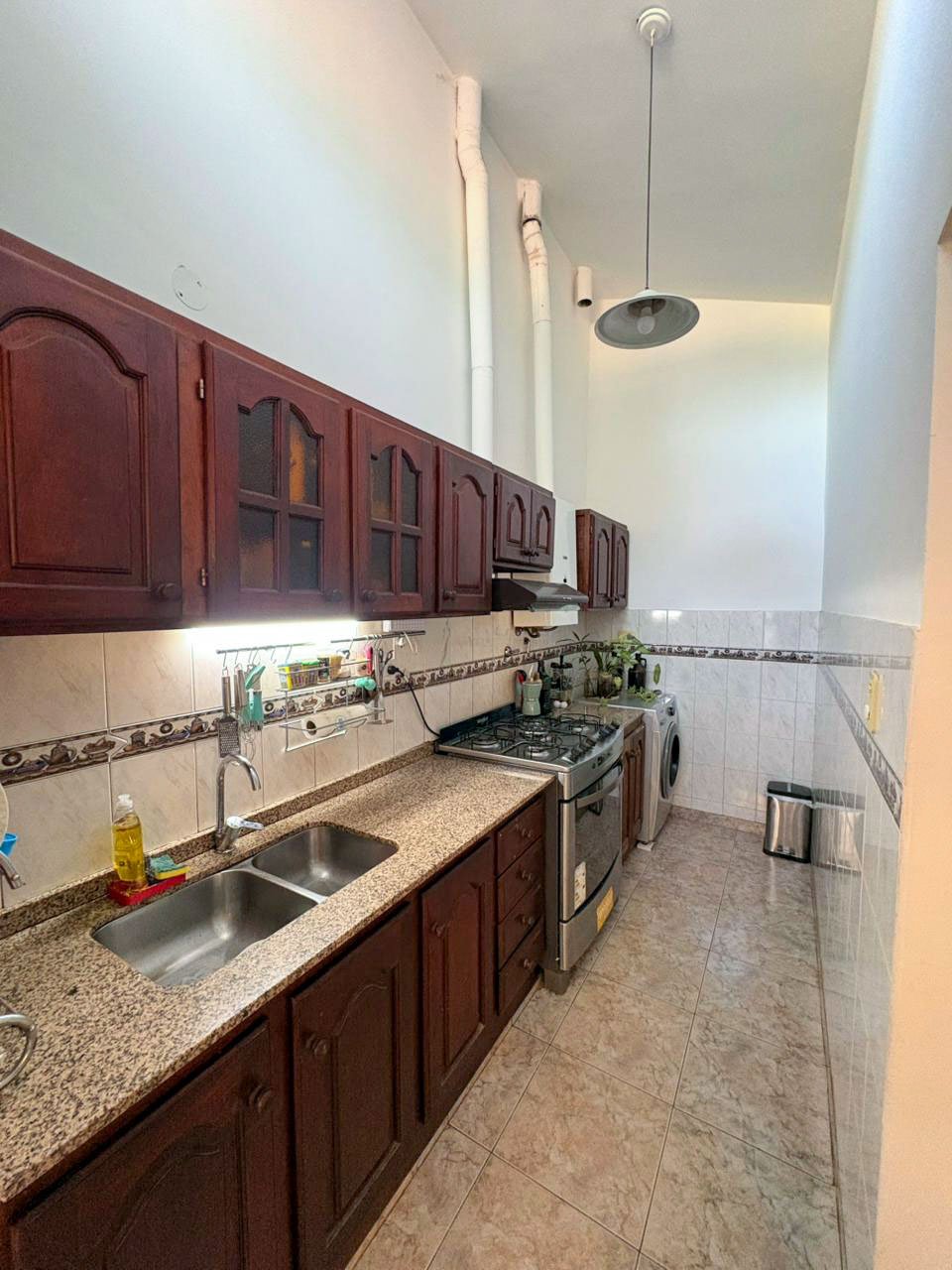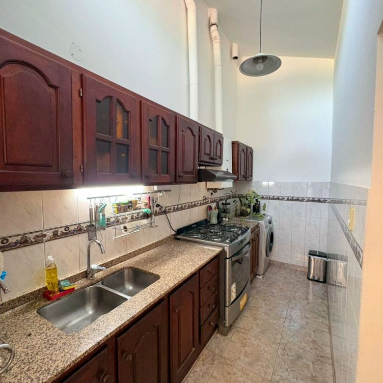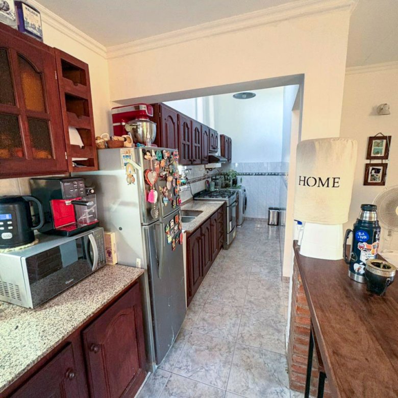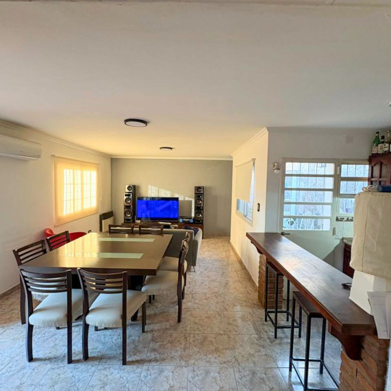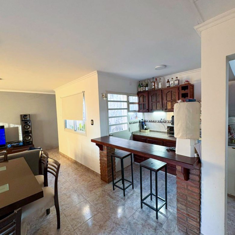 La propiedad cuenta con living, comedor, cocina, tres dormitorios y dos baños, además de cochera doble, patio interno y patio exterior, brindando comodidad y espacios al aire libre.