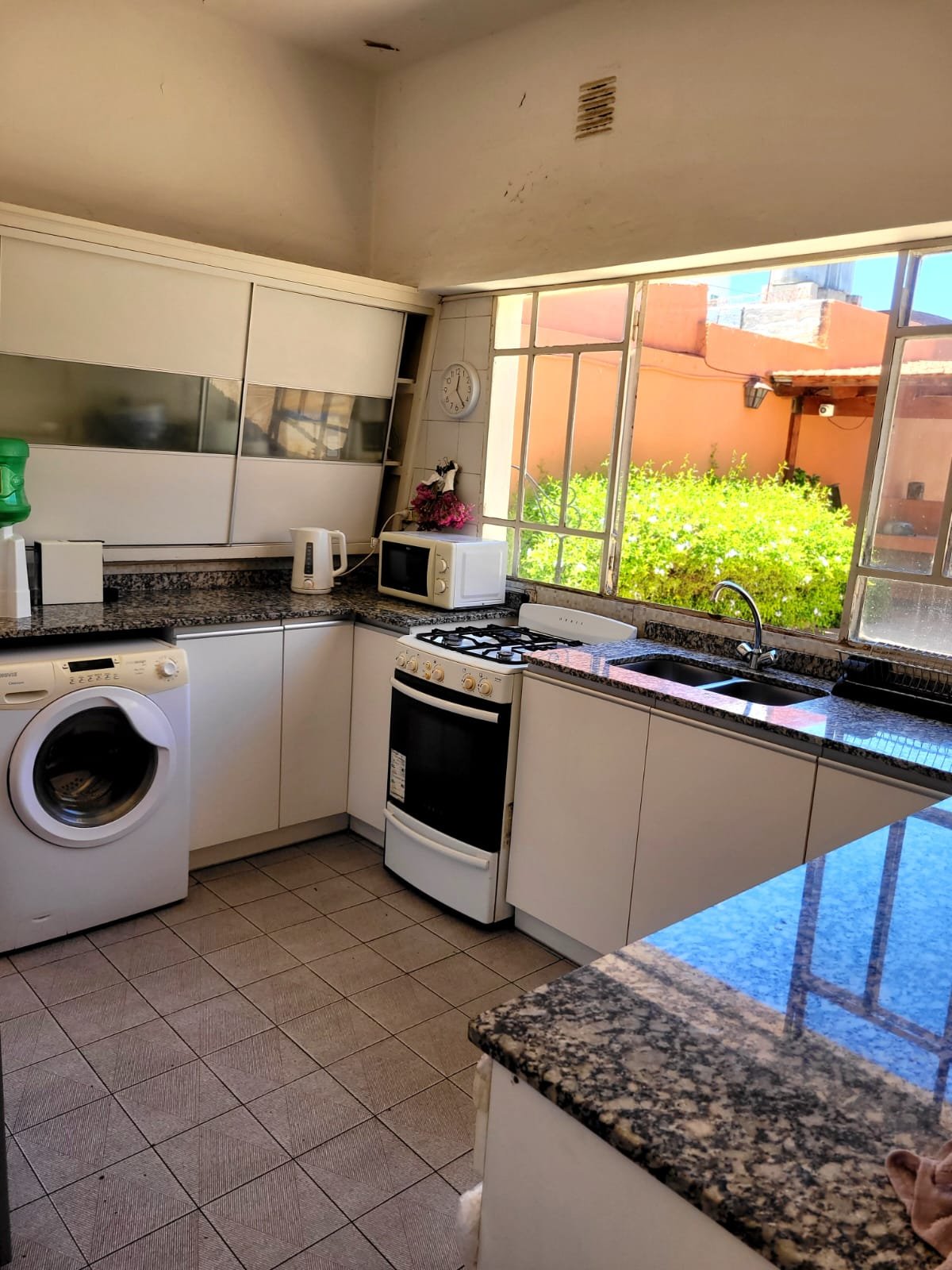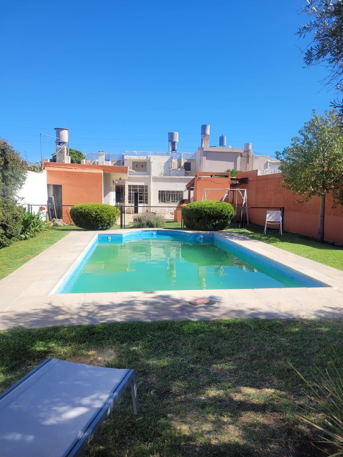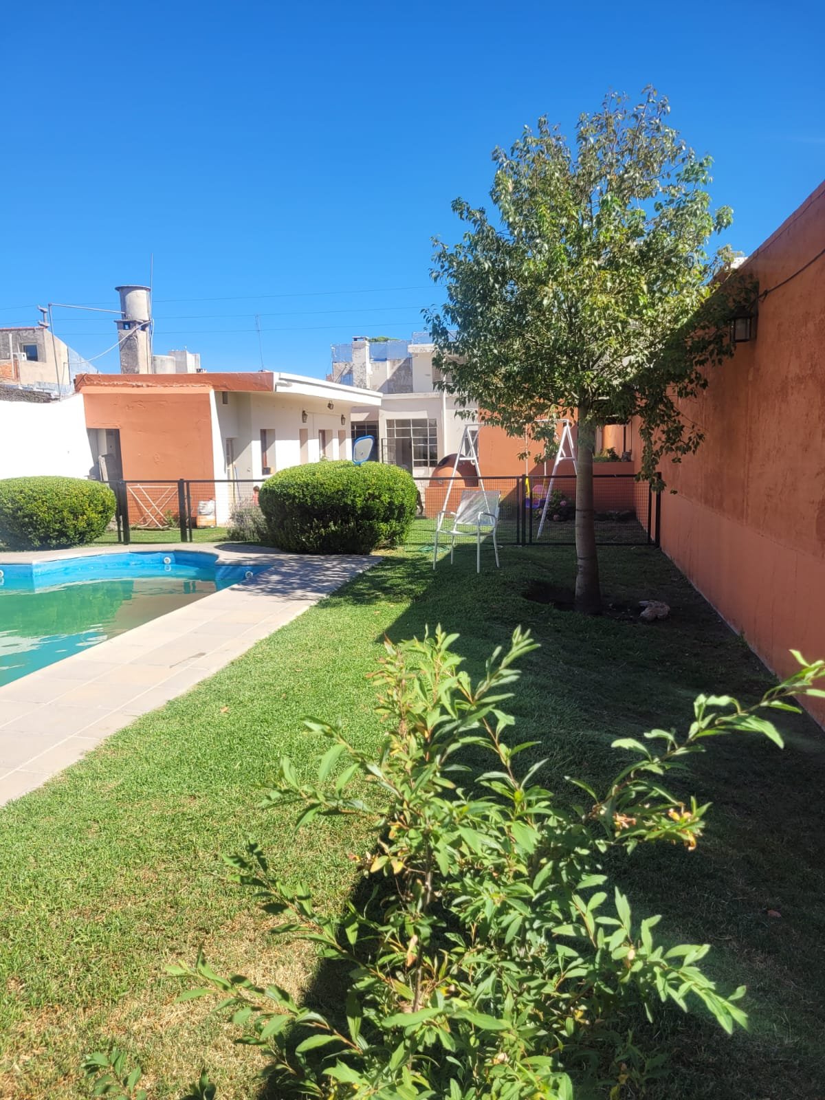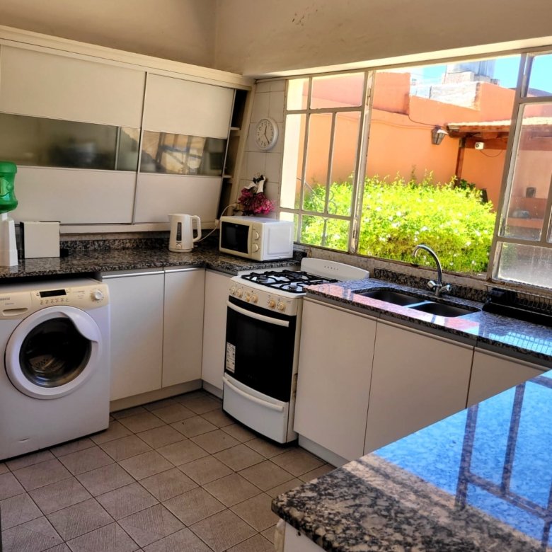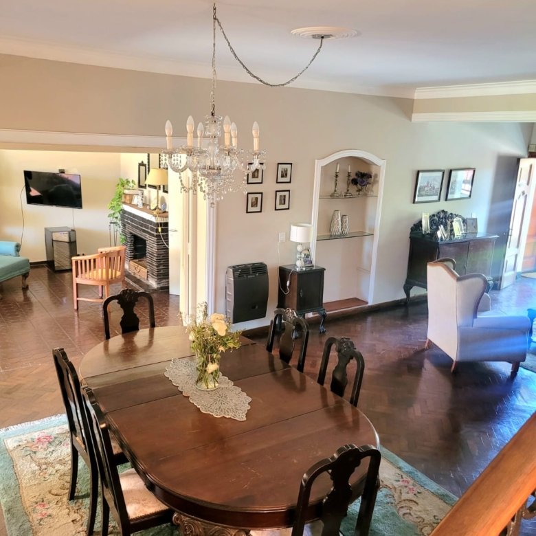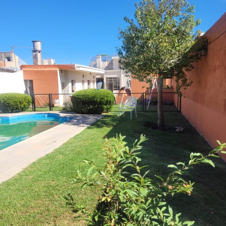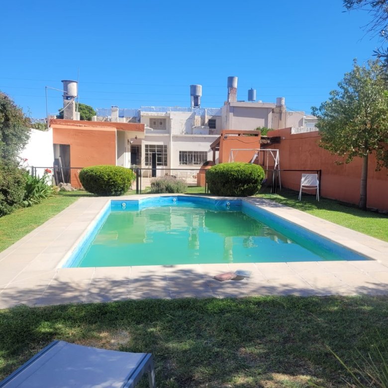 Casa de dos plantas, con living amplio y luminoso, cocina, comedor, un baño y un dormitorio en planta baja. Cuenta con garage para un auto, patio con churrasquera, tres dependencias con baño, espacio verde y pileta con todo su equipamiento. En planta alta tiene tres dormitorios con placard y un baño completo. Ambientes bien distribuidos, ventilación natural, pisos de parquet y estado general impecable. Todos los servicios.