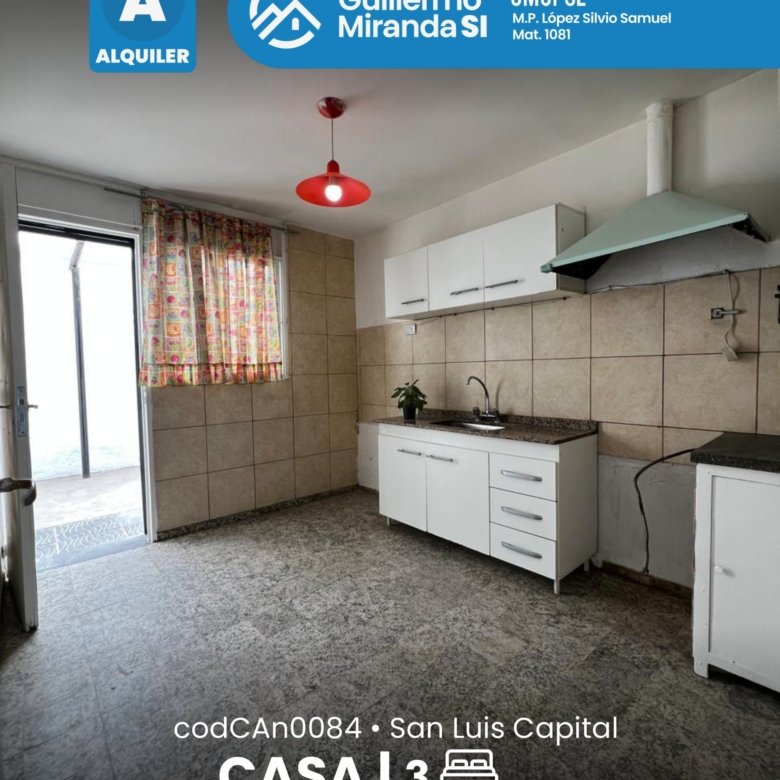 Casa en alquiler en estado general impecable. Cuenta con 3 dormitorios, 1 baño, living comedor, cocina, cochera y patio. La propiedad dispone de todos los servicios.