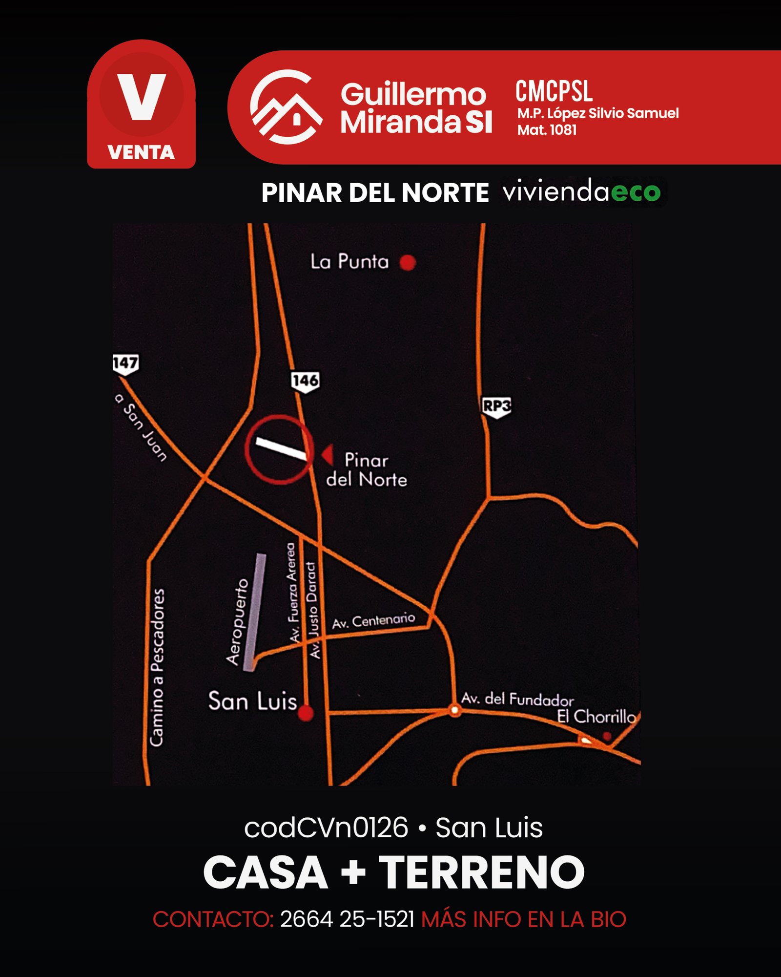 UBICACIÓN: Barrio Pinar del Norte, camino a La Punta, a 10 minutos del centro de la ciudad.