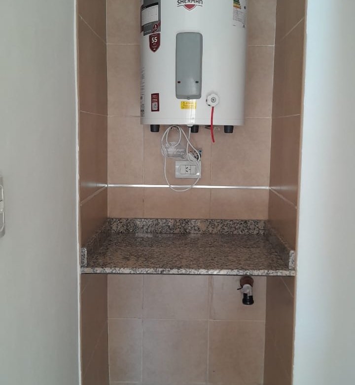 Departamento en planta baja. Cuenta con 1 dormitorio, living comedor, cocina, baño, patio y cochera.