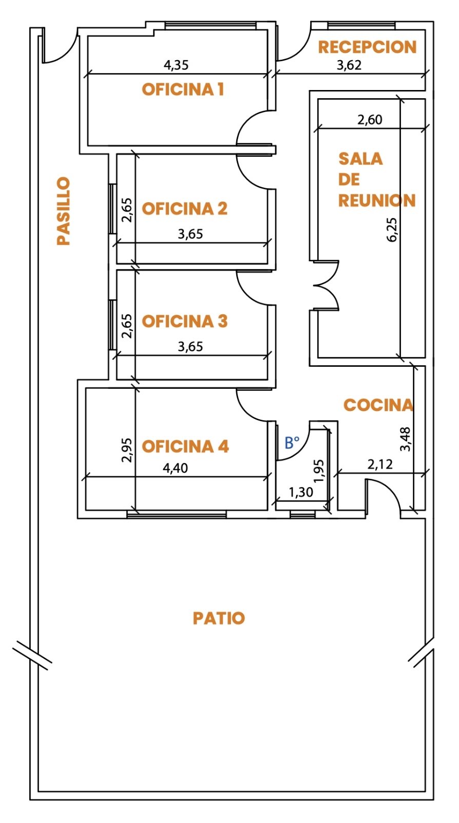 La propiedad cuenta con sala de recepción y espera, sala de reunión, baño, cocina y patio con acceso independiente.